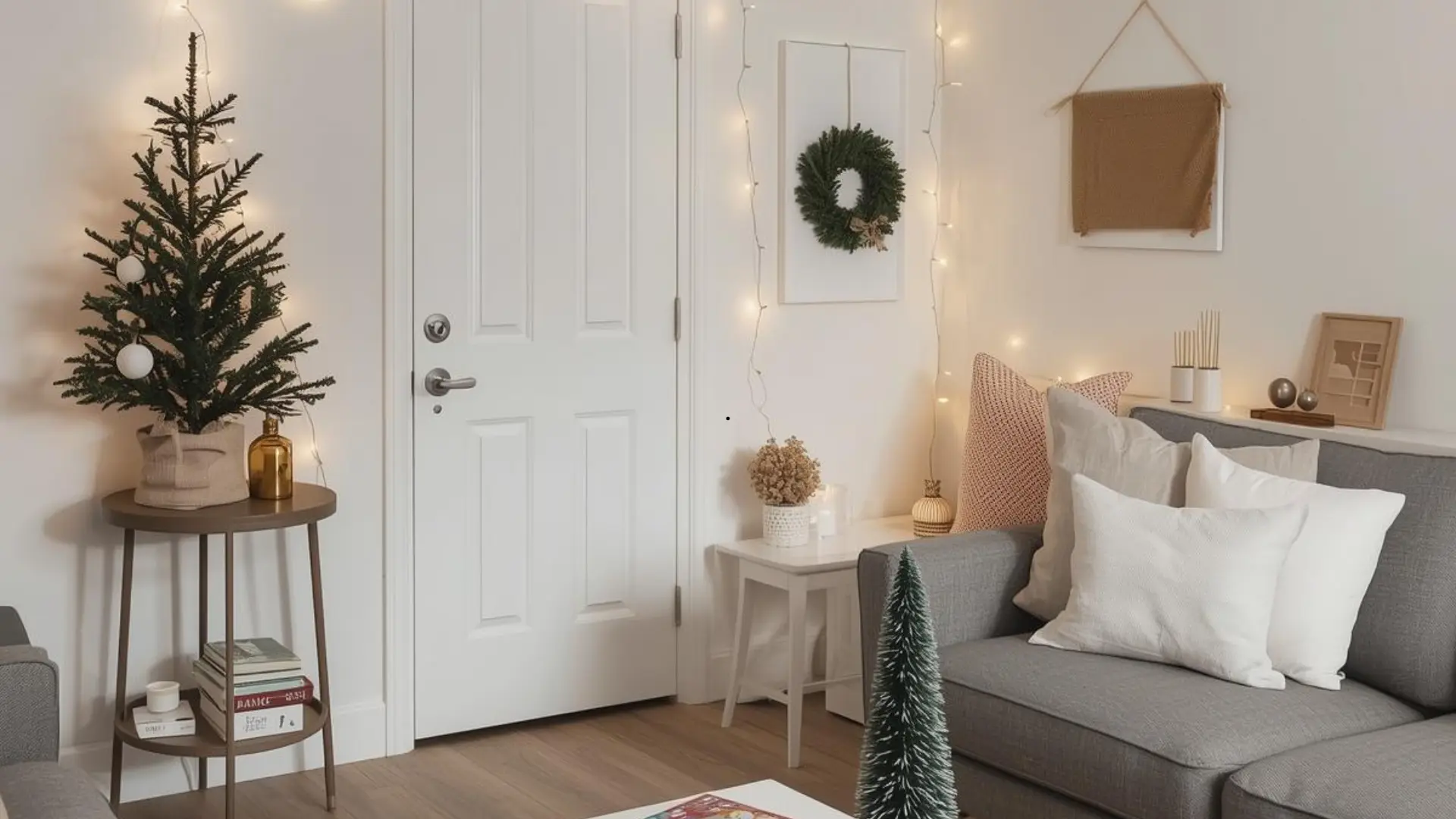 Guests don’t need a full tree; even a small one creates that instant holiday cue. Plus, it fits on a counter or console table without complicating the space.